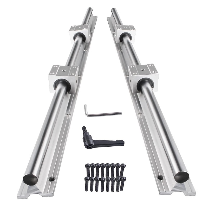 - PAKAGE: This linear rail set includes 2x SBR20-1000mm linear rails, 4x SBR20UU bearing blocks, 1x 4mm wrench, 1x M6*12mm Locking Handle ( adjusting the tightness of the slider block ), 16x M6*20mm screws (connecting the sliding bearing blocks and plates ).