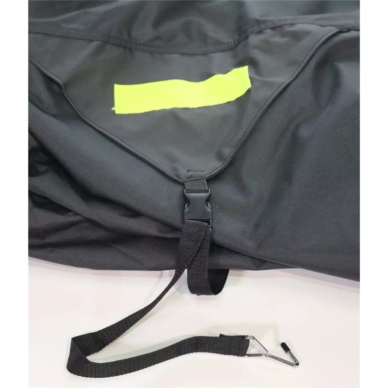• Easy to install, one person can do it. The elasticized shock-cord encased in the hem will keep the cover snug to your sled, and the included strap system will keep it secure. Store it in the included stuff-sack when you aren't using it.