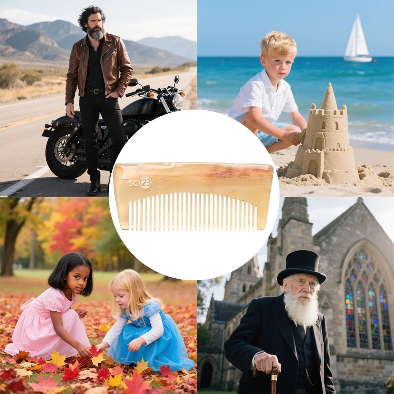 This handcrafted 3.9-inch ox horn comb is designed to cater to both men with beards and parents of young children. Its compact size makes it perfect for on-the-go grooming, fitting easily into your pocket or bag. Made from durable, natural ox horn, the comb is gentle on the hair and scalp, helping to reduce split ends and prevent static buildup. For men, it's a great tool for keeping your beard smooth, soft, and well-groomed, while for kids, its fine, rounded teeth make it ideal for combing thinner hair without causing discomfort. Enjoy the benefits of this eco-friendly, portable comb that serves multiple needs in one stylish tool.