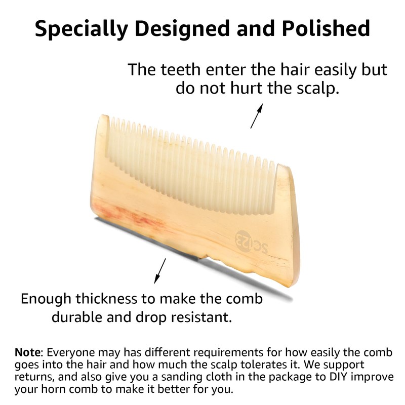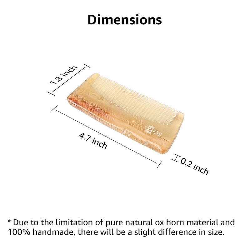 SC123 Untreated Real Ox Horn Handmade Comb – 3.9 Inch Combs for Beard, Mustache, and Hair – Anti-static, Detangling, and Scalp Massage Gua Sha for Men, Kids, and Children