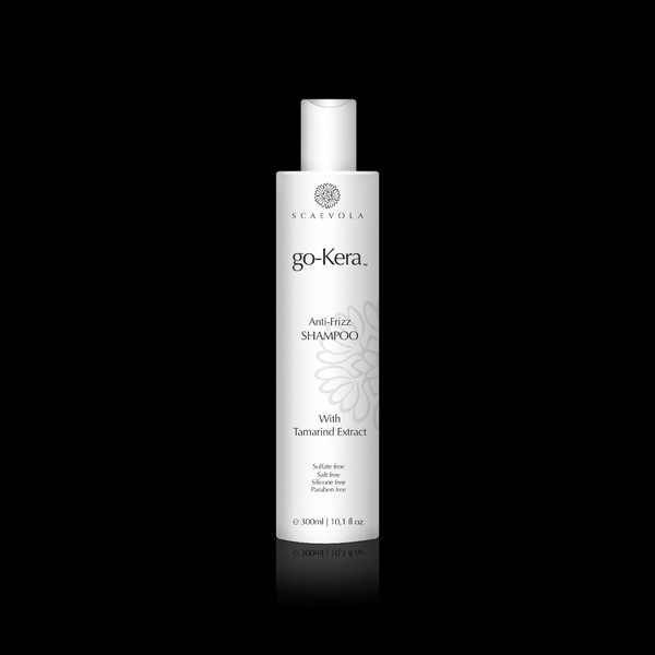 What are the benefits and features of Scaevola go-Kera Anti-Frizz Shampoo 300ml?- Gently cleanses hair while repairing damage and eliminating frizz.