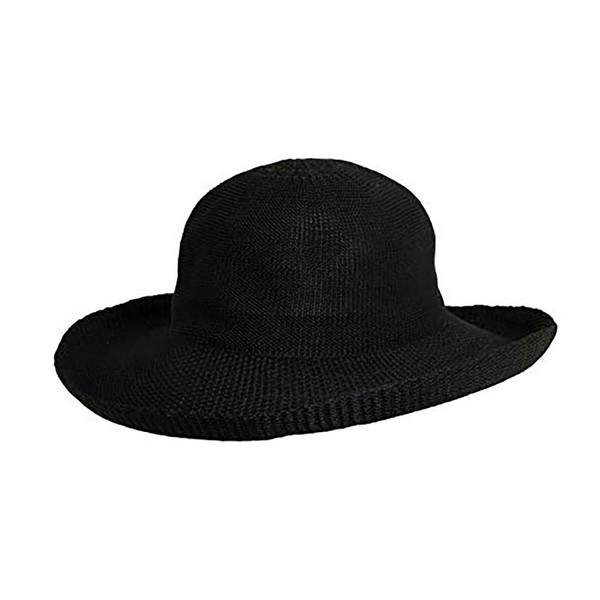 Scala Women's Knitted Poly Straw Big Brim Hat, Black, One Size