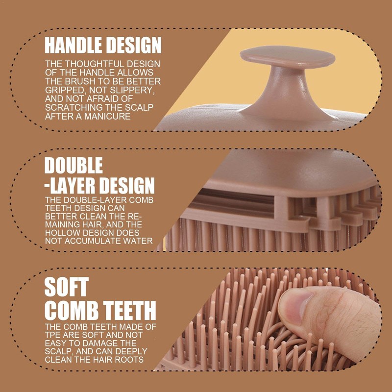 - ◣Double-Layer Comb Teeth: The hair shampoo brush's double-layer comb teeth and hollow design deeply clean hair roots, while soft TPE bristles gently removes hair strands without damaging the scalp. No water accumulates for added convenience.