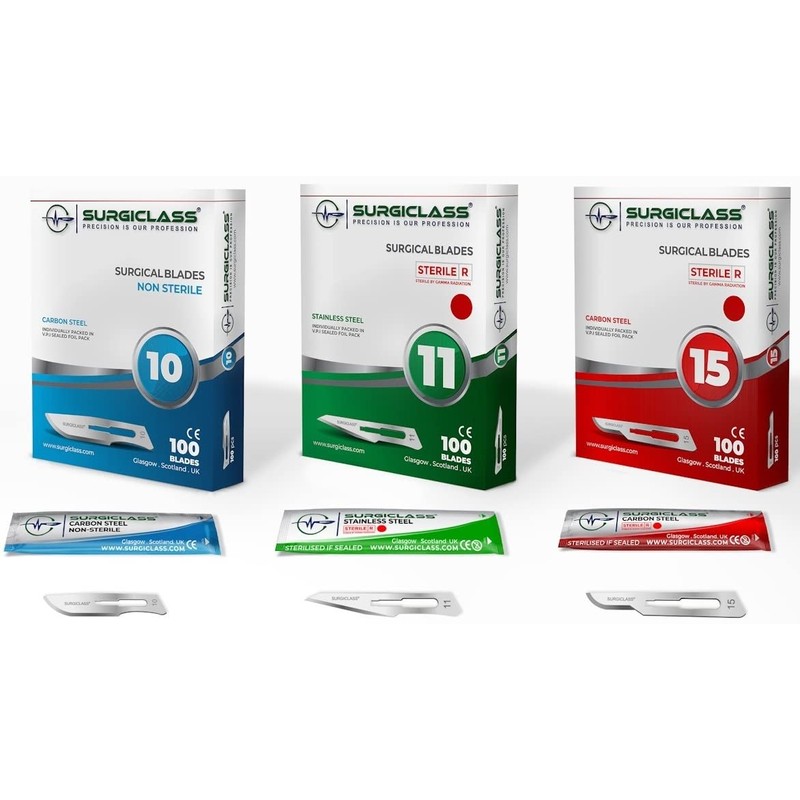 Scalpel Blades # 10 Carbon Steel Non Sterile Scalpel Surgical Blades Pack of 10 and Steel Handle for Wood Art, Surgical, Sculpting, Repairs, Lab Anatomy, Sign, Card Making Lab Training SURGIBL10-10