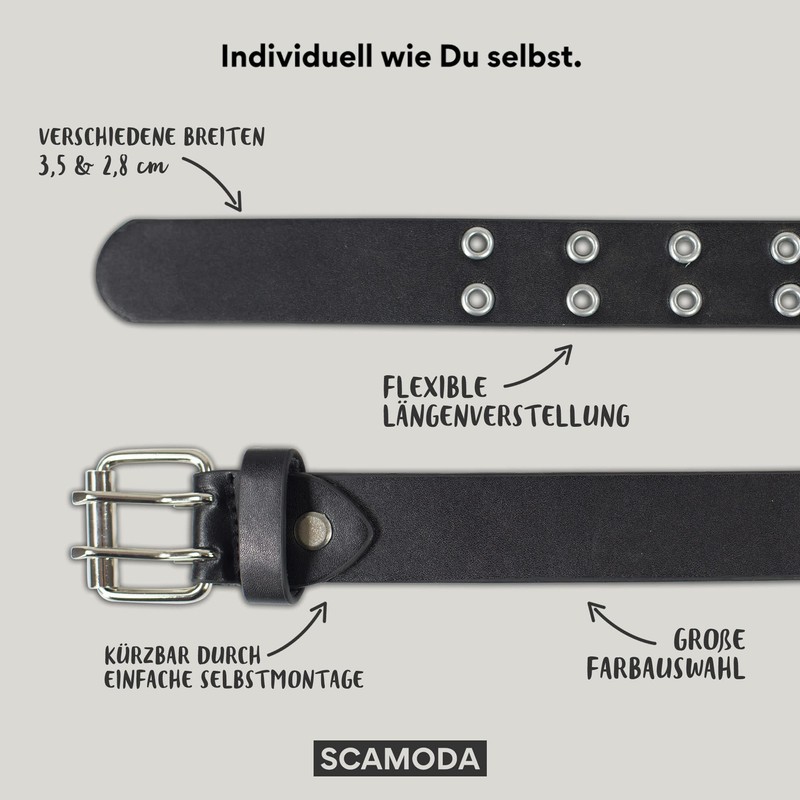 SCAMODA Genuine Leather Riveted Belt for Men and Women with Double Hole Belt and Pin Buckle.