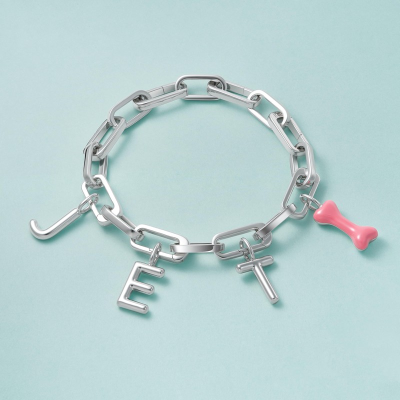 - SCAMPER & CO Alphabet Letters Initial Charms 925 Sterling Silver Bracelet & Necklace Rhodium Letter J