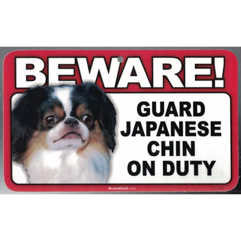 SCANDICAL BEWARE GUARD JAPANESE CHIN DOG ON DUTY 5" X 8" HANGABLE PLASTIC SIGN NEW