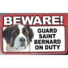 SCANDICAL BEWARE GUARD SAINT BERNARD DOG ON DUTY 5" X 8" HANGABLE PLASTIC SIGN NEW