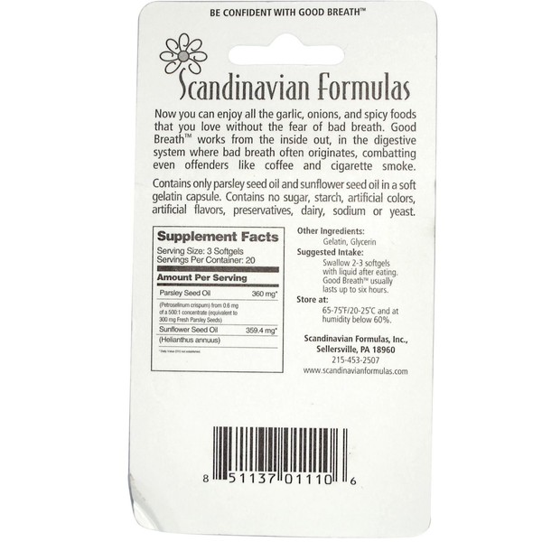 Scandinavian Formulas Good Breath Parsley+Sunflower 60 Softgels