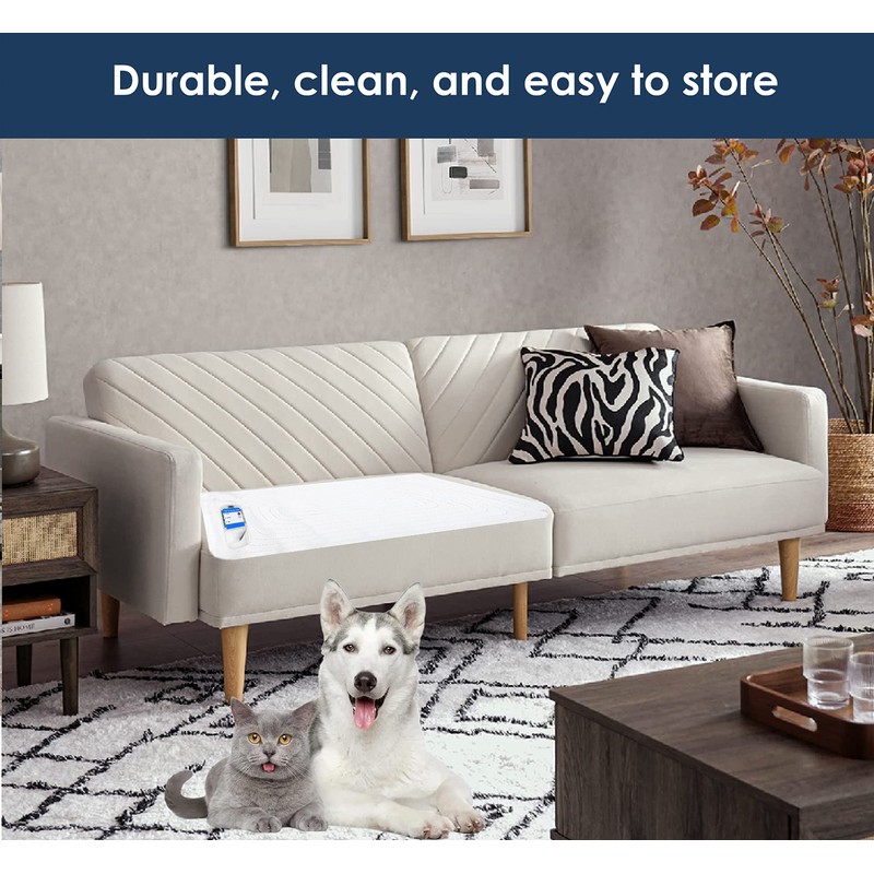 - 【Train Pets to Stay Off】Scat Pet shock mat keeps dogs and cats off counter, bed, furniture, couch, sofa, dinning table, armchair, floor carpet, hallway, stairs, plant, entertainment center, baby activity area, motorcycle, car, fireplace mantle, stove, standing, Christmas tree and trash can safely and effectively, Have a better time with your furry friends