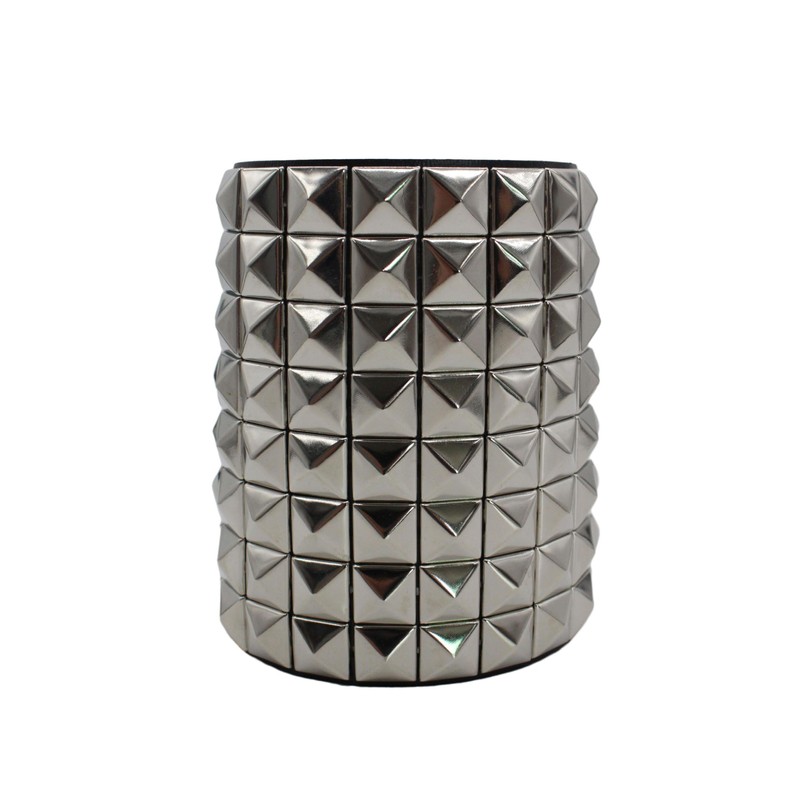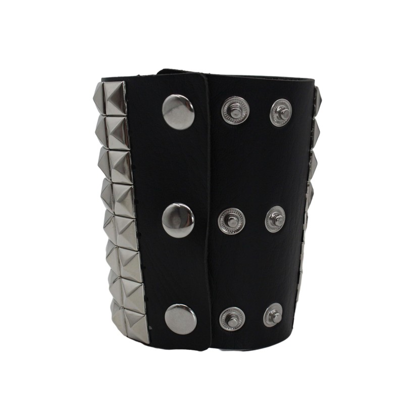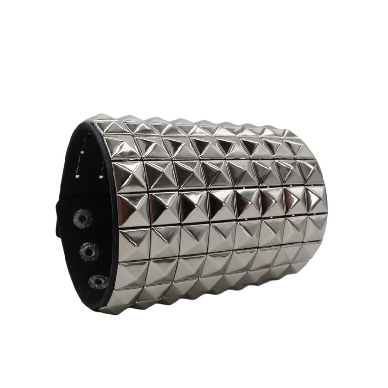 Scddboy Unisex Punk Leather Stud Bracelet,Silver Pyramid Studs Cuff Biker Bracelet for Men