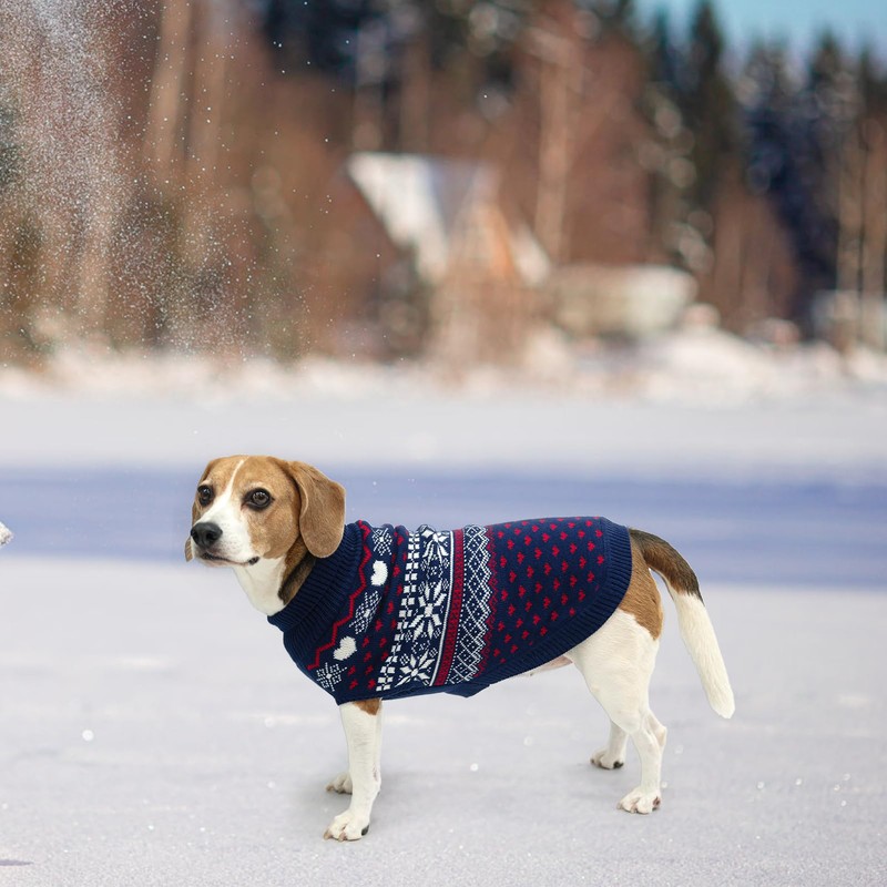 - CUTE DOG KNIT SWEATER: This dog winter coat is rich in winter vibes with a knitted pattern of hearts and snowflakes. Three colors for boys and girls. Walking your dog down the street in a Christmas sweater is sure to be very conspicuous.