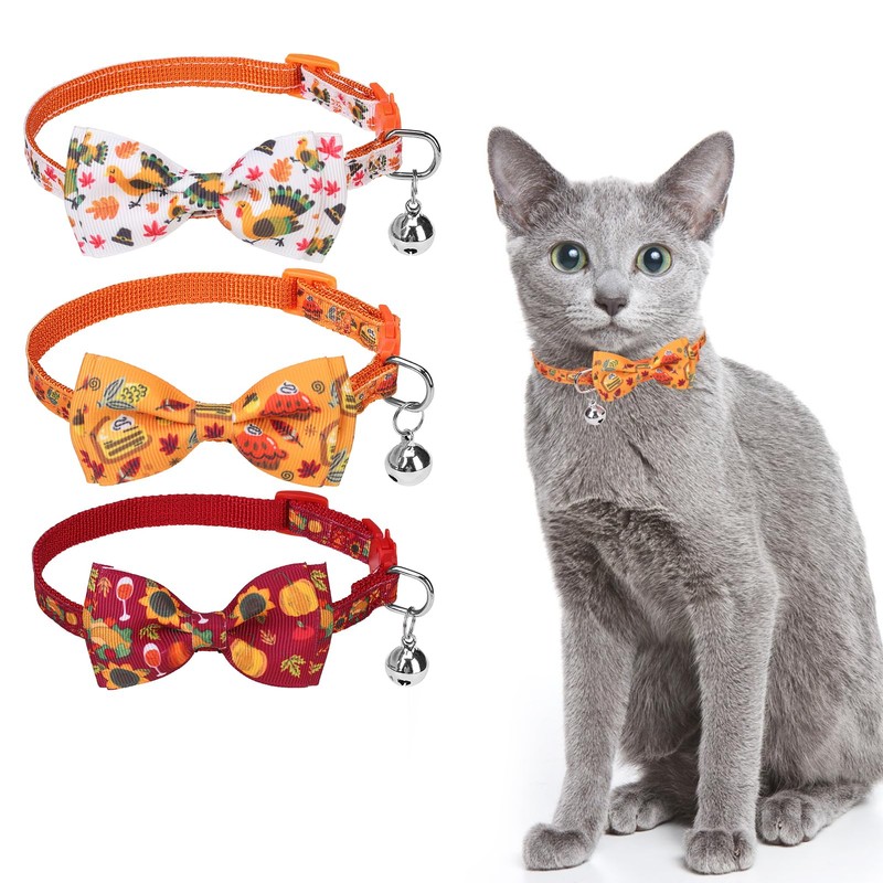 - Thanksgiving Cat Collar: Thanksgiving-style personalized cat collar makes your cat look charming and cute. Free to move and adjust on the collar. Featuring Thanksgiving elemental design with heat transfer prints of cake, pumpkin, turkey, leaves, corn, sunflowers, and more.