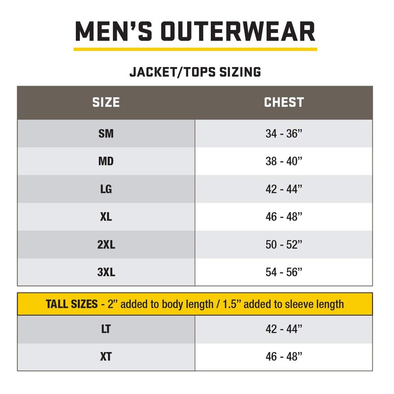 • CAMO PARKA: Once you have put this parka on, you're not going to want to take it off. It is made of durable material that is comfortable to wear and strong enough to withstand the sport of hunting. It is offered in sizes M–3XL. Chest measurements in inches: M (38–40), L (42–44), XL (46–48), 2XL (50–52), and 3XL (58–60).