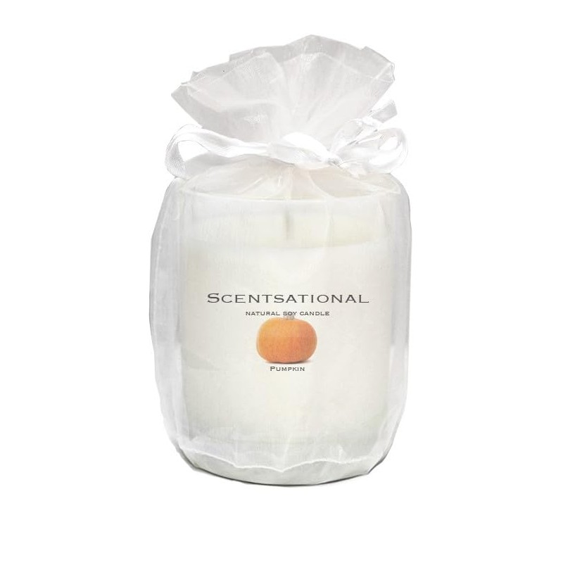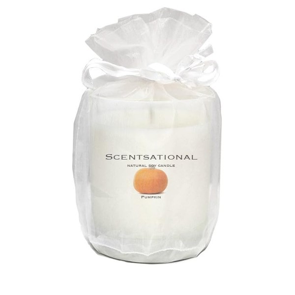 Scentsational Natural Pumpkin Soy Candle, 11 oz Glass Jar, Gift Wrapped, 50-60 Hour Burn Time