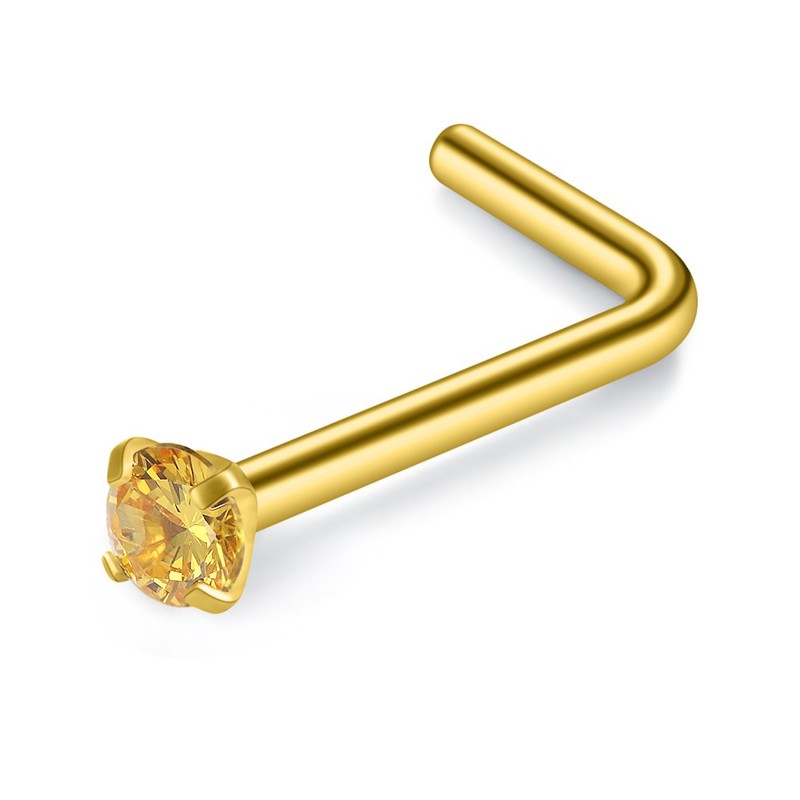 SCERRING 20G 5PCS Mix Color Stainless Steel L-Shape Nose Stud Ring Piercing Body Jewelry 2mm Cubic Zirconia Diamond