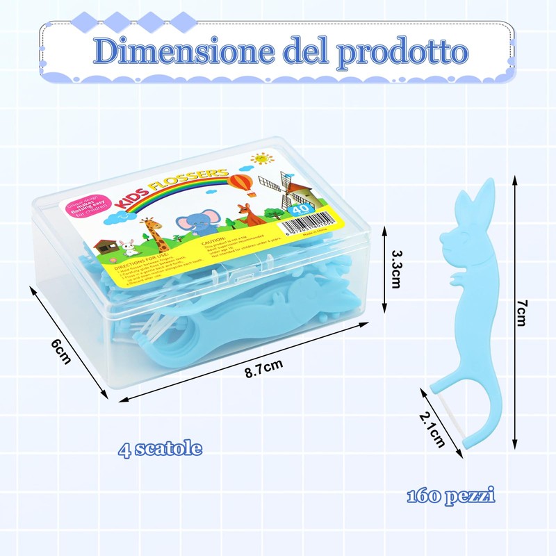 - 🐾[Lustige Form, fördert die Verwendung] Diese Zahnseide verfügt über ein niedliches Tier-Design (Giraffe, Elefant, Kaninchen, Känguru) und lebendige Farben (einschließlich Gelb, Blau, Rosa, Grün), um das Interesse der Kinder zu wecken und die Zahnzwischenräume anregender zu machen.