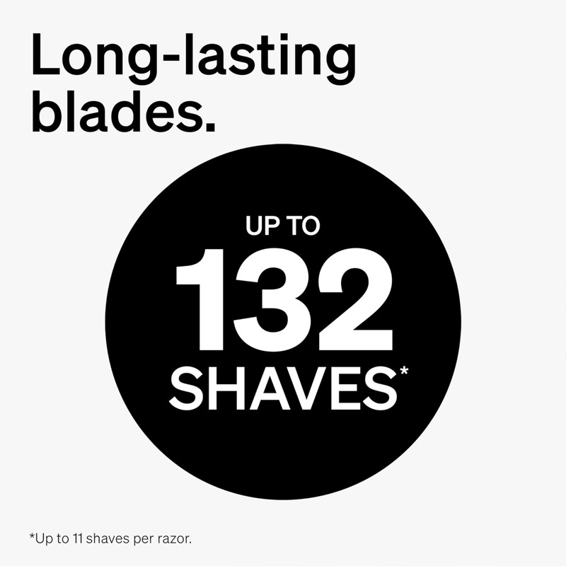 • LONG-LASTING BLADES – Each razor lasts up to 11 shaves, for up to 132 shaves per pack.