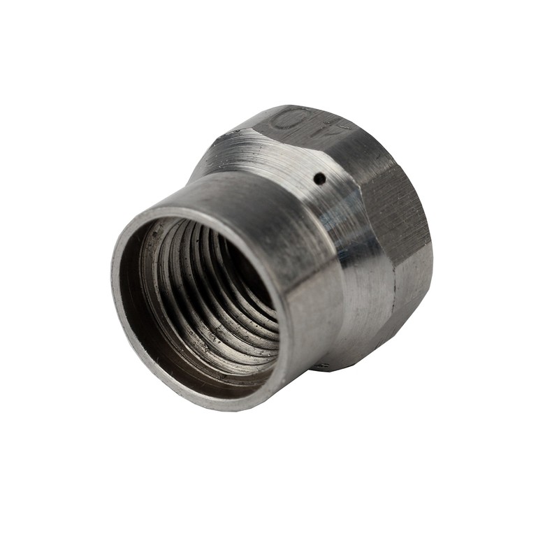 * Laserjet Nozzle Button Nose * 1 front jet at 0° that clears blockages * 3 rear jets at 33° flush out debris loosened by the front jet * 1/8" Female Fitting - Fits 1/8" NPT male sewer jetter hose fittings * 5.0 Orifice * 5000 PSI Max Pressure * Handles water up to 310° F * Durable High Strength Stainless Steel