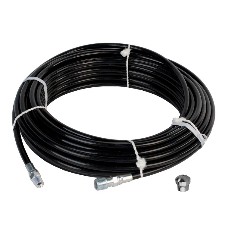 Schieffer 1/8in. x 50ft. 4800 PSI Thermoplastic Sewer Jetter Hose & 5.0 Orifice Button Nose Nozzle