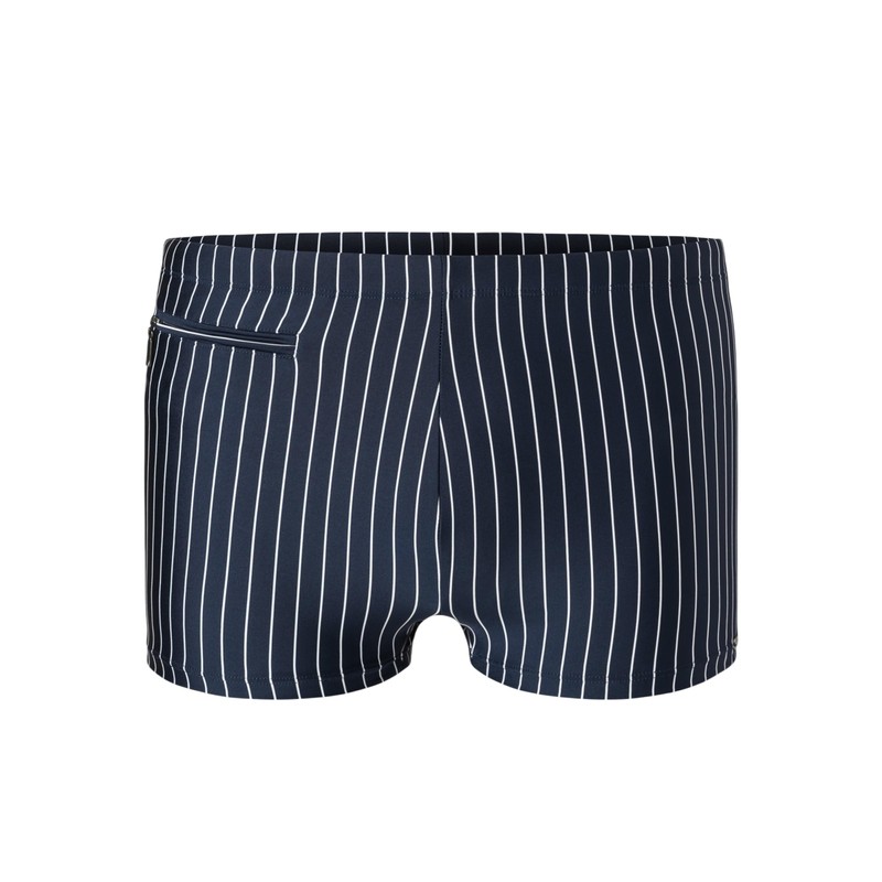 - Admiral blue retro shorts for men with white stripes, from the Schiesser Aqua 'Nautical Casual' swimming collection, with flexible, inner drawstring in white, small pocket with zip - perfect for safely storing coins or a key, with inner briefs made of soft, skin-friendly mesh fabric for optimal and secure comfort, small aqua logo made of silver-matt metal on the leg cut, made of elastic, sustainable and easy-care