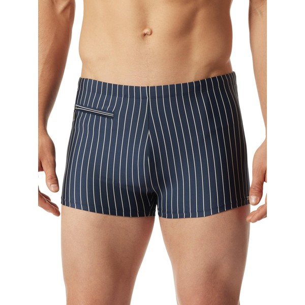 - Retro shorts for men with stripes, from the Schiesser Aqua 'Nautical Casual' swimming collection, with flexible, inner drawstring, small pocket with zip - perfect for safely storing coins or a key, with inner briefs made of soft, skin-friendly mesh fabric for optimal and secure comfort, small Aqua logo made of silver-matt metal on the leg cut, made of elastic, sustainable and easy-care knitted fabric