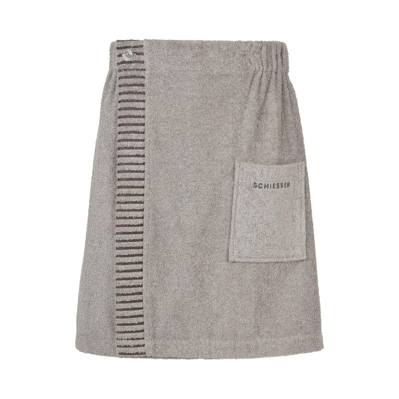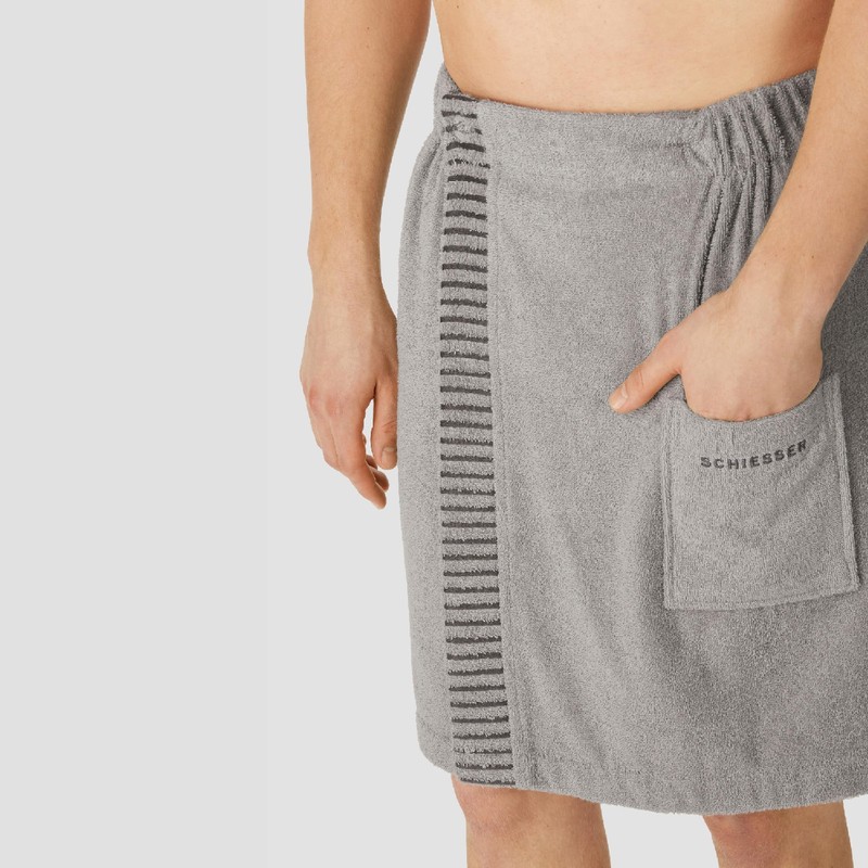 High-quality sauna kilt with intricate details. 100% cotton from sustainable production. Cuddly soft and absorbent. Famous Schiesser brand quality. Skin-friendly, easy to clean and easy to dry. 3-way individual width adjustment. Hand pocket with embroidered logo. 2 sizes Suitable for allergy sufferers. Free from harmful substances. Safe and fair produced.