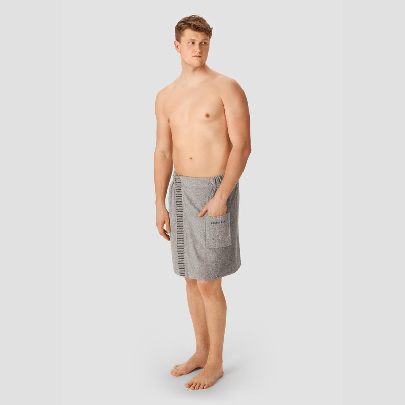 - That's inside. A comfortable, absorbent sauna kilt for men with hand pocket and embroidered logo in size 46-54 (55 x 150 cm).