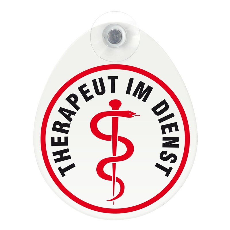 Schild, Autoschild Therapeut im Einsatz mit Saugnapf, 1,1mm wetterfestes Material 100 x 120 mm groß, von innen oder außen GREEN