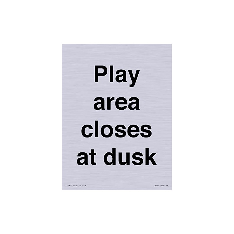 Schild mit Aufschrift "Play Area closes" in der Dämmerung, 150 x 200 mm, A5P