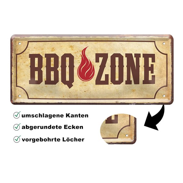 - Funny saying: "BBQ Zone". The beautiful lettering makes this sign an absolute eye-catcher. Makes an ideal funny gift idea for all men or women. :)