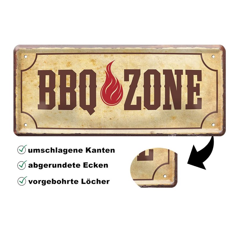 schilderkreis24 – Tin Sign Funny Grill Saying "BBQ Zone" Decorative Humour Grilling Gift Idea Man Woman 28 x 12 cm