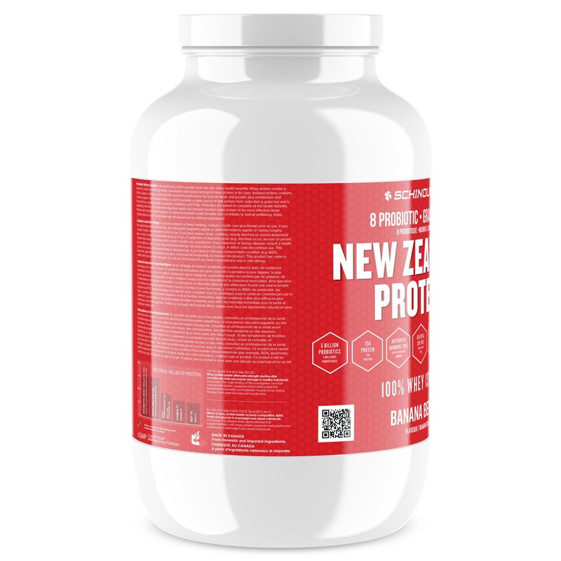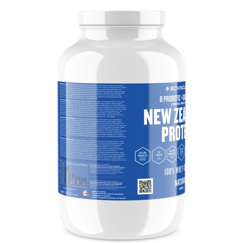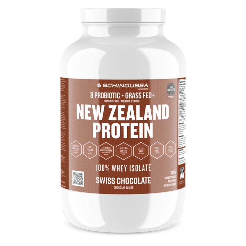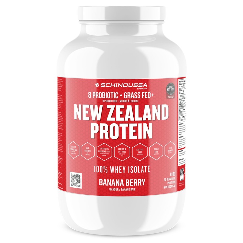 The protein in Schinoussa Probiotic Grass Fed New Zealand Protein is the cleanest protein available there is. No hormones, or antibiotics of any kind are used on New Zealand grass fed cattle. Schinoussa use whey isolate to eliminate all sugars, fats, carbs and lactose, then add 8 strains of Canadian probiotics 5 billion CFU. This makes Schinoussa's formula the easiest to digest, absorb and utilize for many benefits. Enjoy lean muscle gains, reduced waistline, improved immune function and energy with a delicious taste.