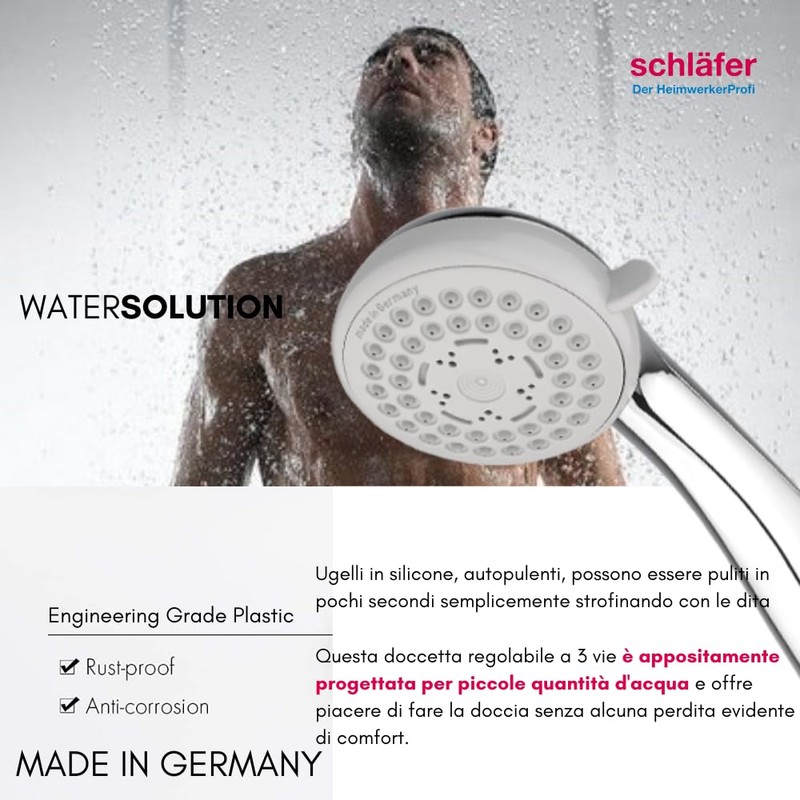 Schläfer | 8196000 Köln-3 Hand Shower Head 3 Jet Anti-Limescale Shower Head Chrome Made in Germany Shower Head Silver Water Saving Rain Shower and Massage Function