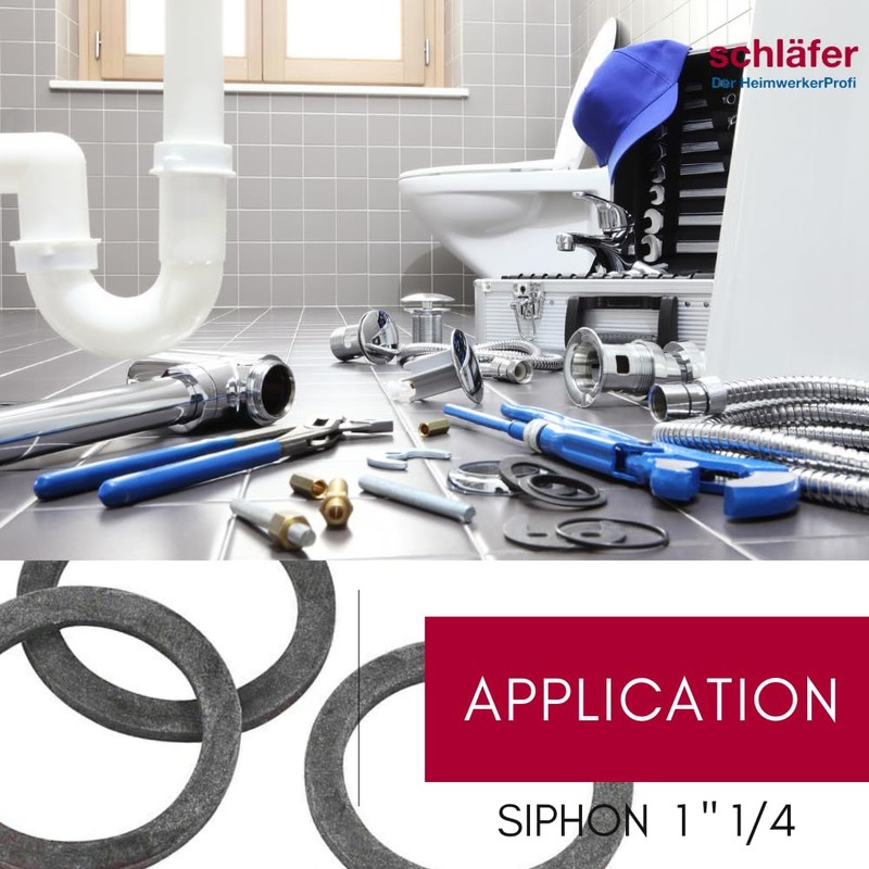 Seals in the set. This seal set from Schläfer The Heiwerker professional is suitable for use with odour traps with type 1 1/4 inch connection thread. The set consists of a total of four components: 5 flat rubber seals. With this assortment of gaskets, you get the ideal replacement part set for your siphon. If a seal has been lost during installation or a seal has become porous after prolonged use - with the replacement seals for odour traps, you always have the right item at hand.