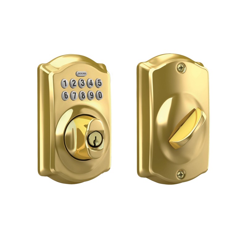 Schlage BE365 CAM 505 Camelot Keypad Deadbolt, Electronic Keyless Entry Lock, Bright Brass