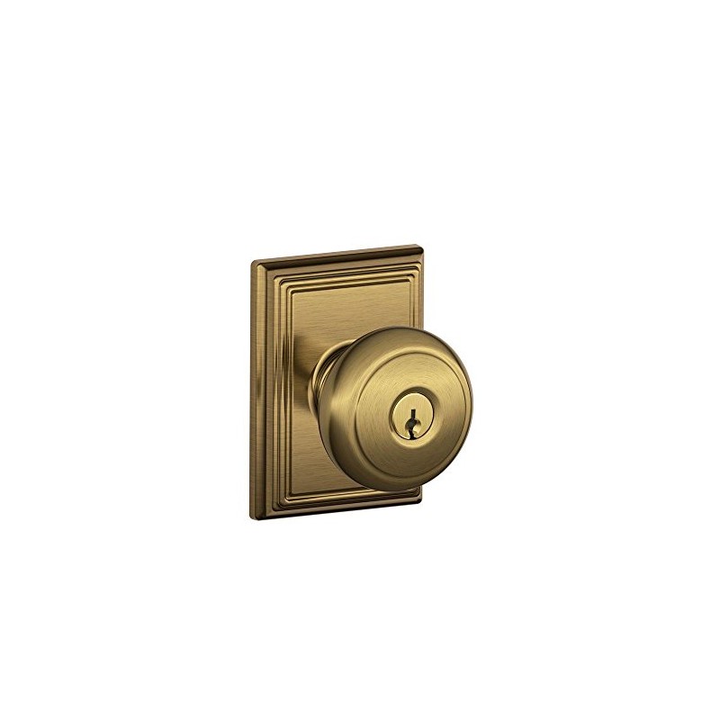 SCHLAGE F51A AND 609 ADD Andover Knob with Addison Trim Keyed Entry Lock, Antique Brass