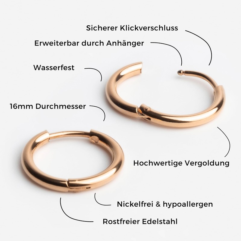Schlichte Creolen roségold • Filigrane Ohrringe Basic • Nickelfreie Ohrhänger Edelstahl vergoldet • Wasserfester Modeschmuck • MIX & MATCH • Ø 16mm