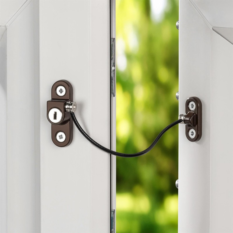 Schlosser Technik 4 Pack Key Locking Mini Cable Window Restrictor in Brown – Durable Child Safety Lock for uPVC, Aluminium & Wooden Windows – Ideal Window Safety Restrictor for Home & Office Use