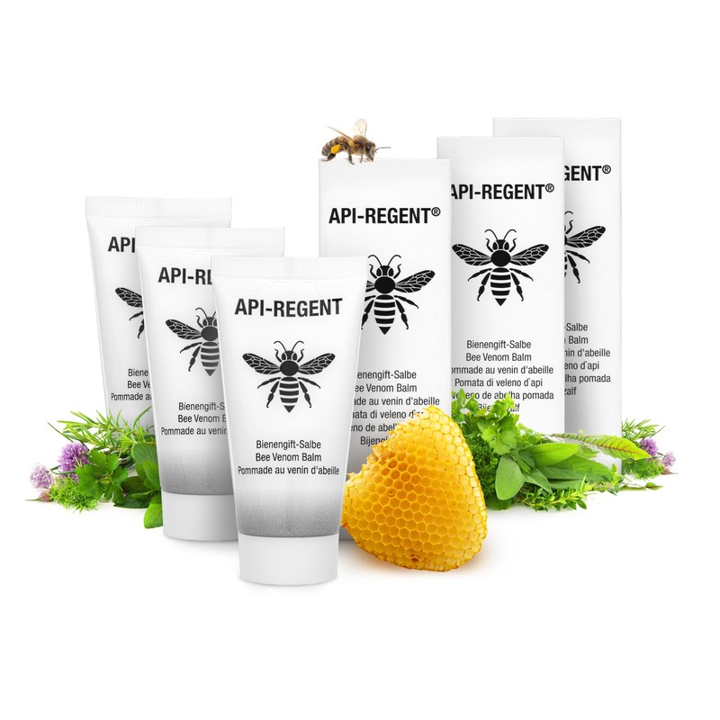 The finely tuned composition of traditional, Bohemian herbal oils and genuine, natural bee venom makes API-REGENT so special. All oils are purely natural and gently processed. The bee venom used, always first quality, corresponds with its melittin content of 60-70% to the highest laboratory standards. API-REGENT also dispenses with skin irritating and heat-forming additives, which are only supposed to suggest a supposedly positive effect. Because a good bee venom ointment comes without an unpleasant "hot feeling" or a "cooling effect" on the skin. Good to know: for the extraction of bee venom, not a single bee has to die!