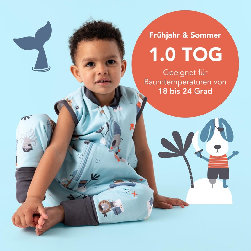 schlummersack Baby sleeping bag with feet, summer 1 tog thin, 60 cm, pirate, sleeping bag with extended cuffs for a height of 60-70 cm, for summer/spring