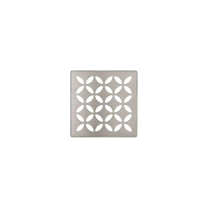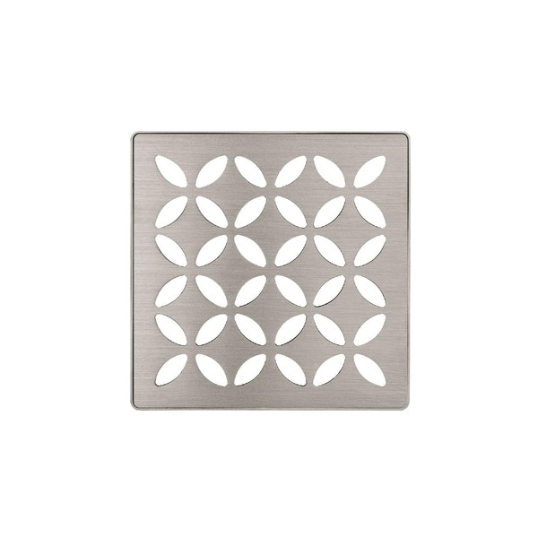 Schluter Kerdi-Drain Grate Kit with Integrated Slope Bonding Flange - Ideal for Bathroom or Wet Rooms - 4" Brushed Nickel Floral, Adjustable - KDIF4GRKEBTD5