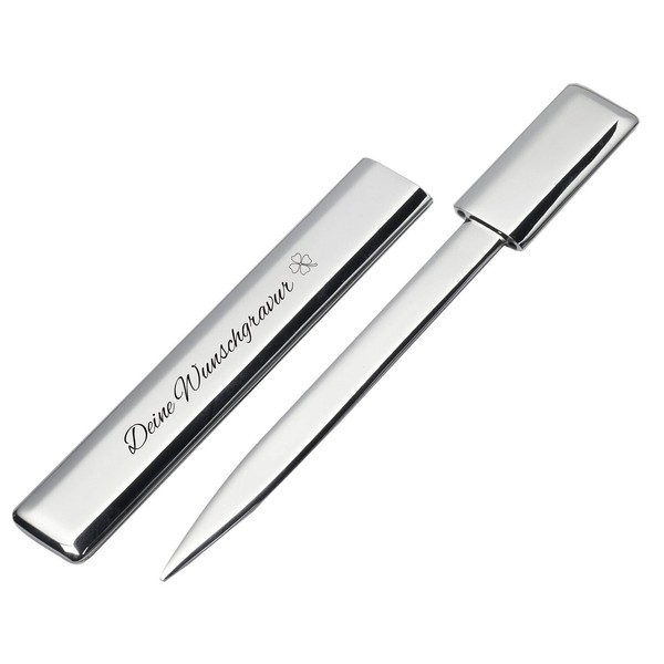 Exclusive letter opener made of metal including engraving of your choice. Colour: silver/glossy. Item no. 51560 individually engraved according to your ideas in high-quality laser process black.