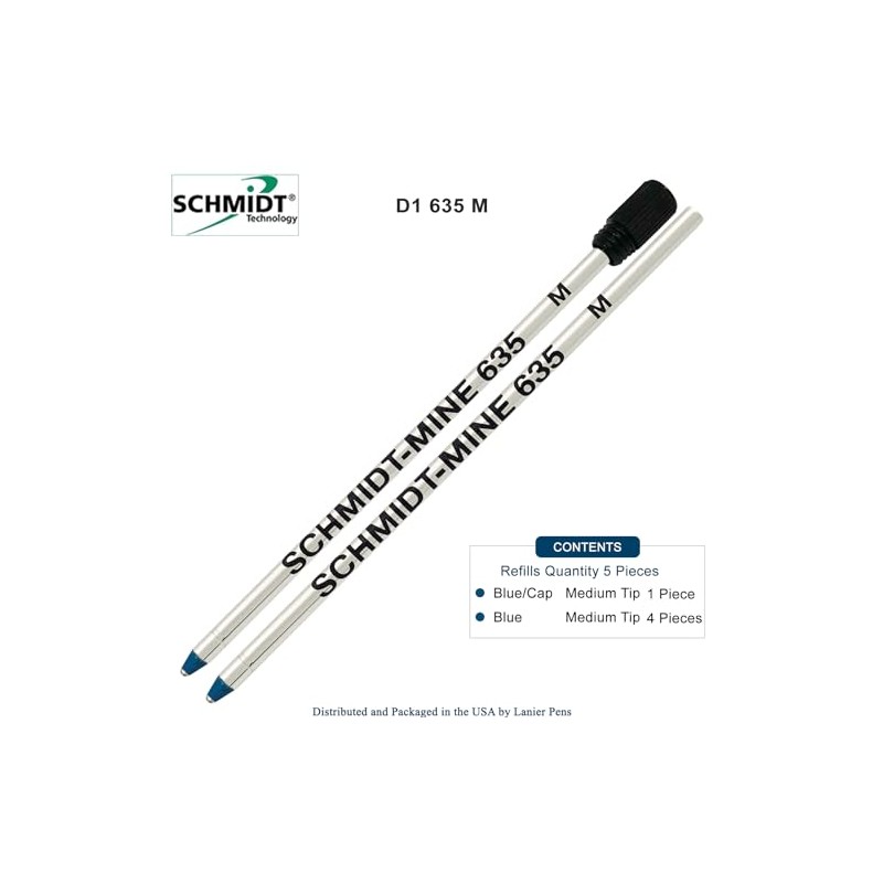 - Schmidt 635 D1 Mine Ballpoint Refill - Blue Ink - Medium Tip 0.7mm - Pack of 5 (Includes 1 Plastic End Cap)