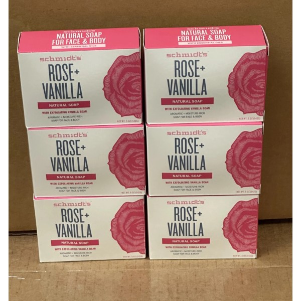 - 6 Pack Schmidt's Rose + Vanilla Natural Soap