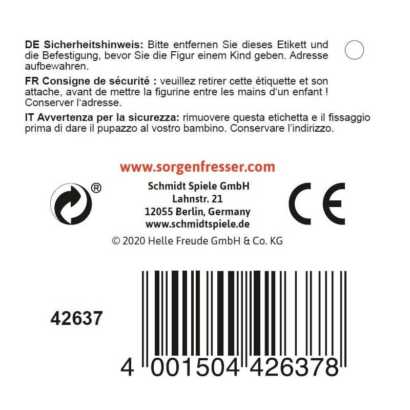 Schmidt Spiele 42637 Worry Eaters Wallo, 24 cm Plush, Edition AHOI, Multi-Coloured