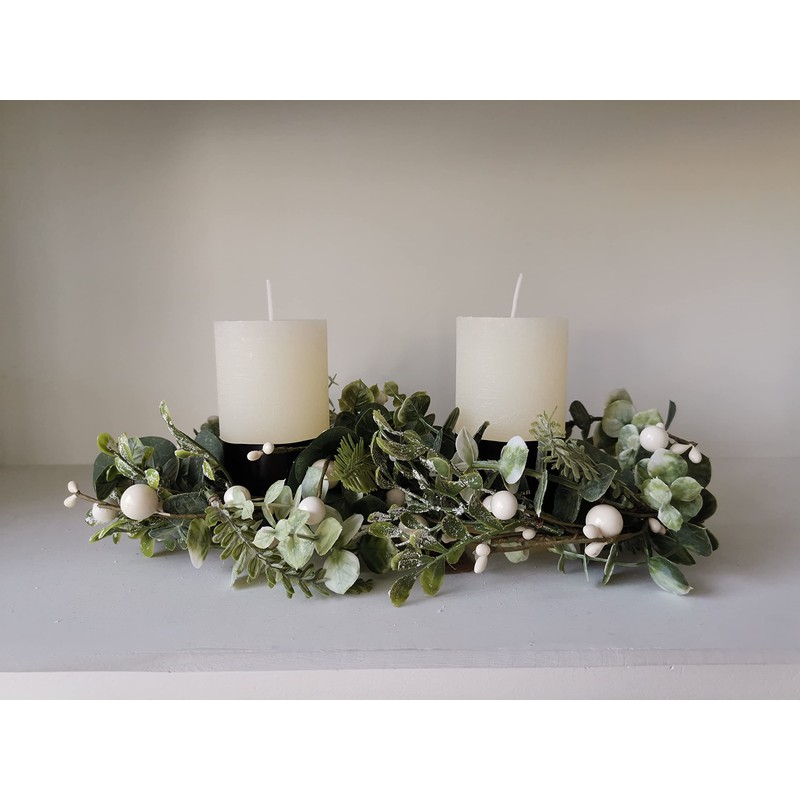 Schmucks HOME Decorative Christmas Wreath 2 x Candles Wreath Advent Arrangement 22 cm + 2 x Pillar Candles Green White