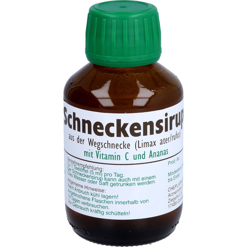 100 ml Schneckensirup enthalten: Zuckersirup 85 ml, Ananasextrakt 10 ml (10 %), Schneckenextrakt 2 ml (2 %), Kastanienextrakt 2 ml, Vitamin C 500 mg, Thymianöl 0,1 ml, Fenchelöl 0,1 ml, Alkohol 1,9% vol