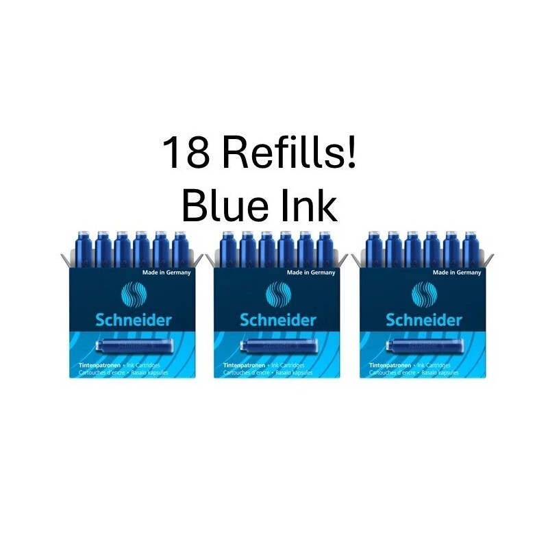 Schneider 18 Schneider Cartridge Refills, for Fountain Pens, European Format, Blu Ink 660