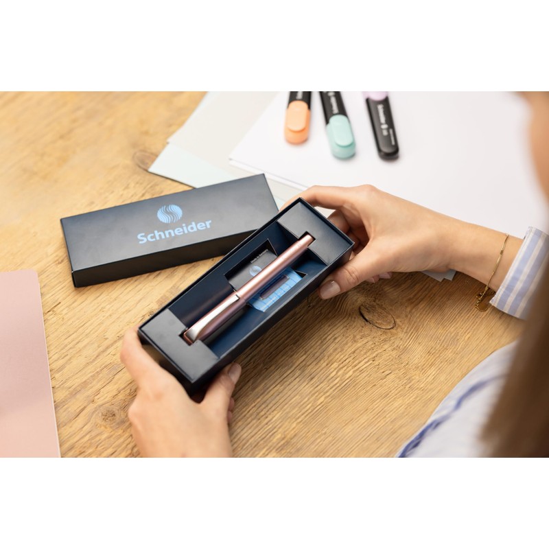Schneider Ceod Shiny Rollerball Pen Gift Set in Cardboard Case Including Standard Ink Cartridges for Right and Left Handed Users, Powder Pink